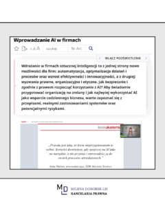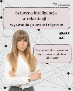 Z przyjemnością informuję, że na stronie PARP (www.parp.gov.pl) ukazał się mój artykuł na temat “Sztuczna inteligencja w rekrutacji – wyzwania prawne i etyczne”