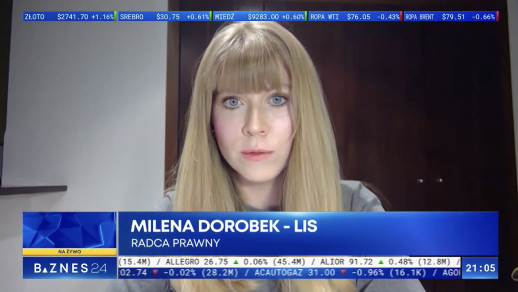 21 stycznia 2025 r. Mec. Milena Dorobek-Lis w programie „Blajer mówi: Biznes” w telewizji Biznes24 opowiedziała o: